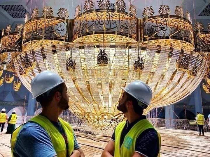 وقد صممت الثريا على شكل سبحة، حيث تم زخرفتها على شكل “سبحان الله وبحمدة سبحان الله العظيم 33 مرة”.