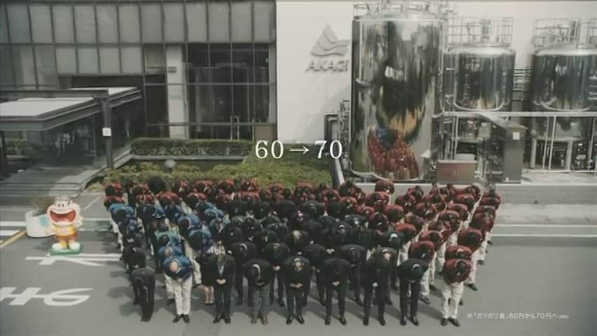 القصة كانت عام 2016 تقريبا، حيث قامت شركة akagi nyugyo اليابانية الشهيرة المعروفة بتصنيع آيس كريم للأطفال، بعرض إعلان لمُدة دقيقة كاملة على كل شاشات التلفزيون الوطني اليابان.
