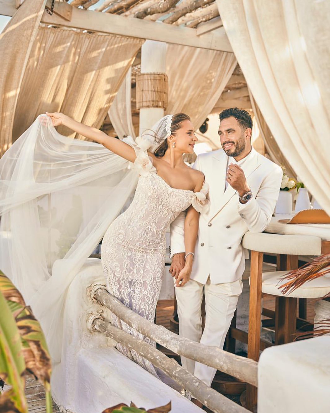 من قلب الساحل الشمالي ومع نسمات الغروب المنعشة لأغسطس على شاطيء منتجع “هاسيندا وايت” الشهير، وعلى أنغام اغنيات عمرودياب، احتفلت نيللي بزواجها وسط لفيف من الأصدقاء والأقارب، وفي أجواء مفعمة بالرومانسية والحب ..